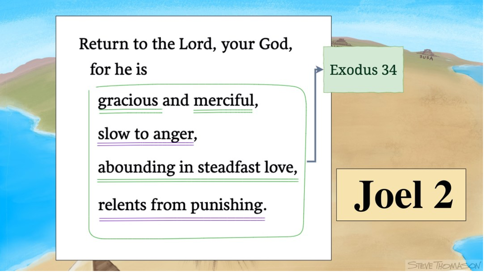 Today I want to reflect on the heart of the passage that most resonated with me. Joel 2:13 is a quotation from Exodus 34:6-7. This is a beautiful, four-line Hebrew poem. It is the most quoted verse in the entire Bible, so it must carry some significance.