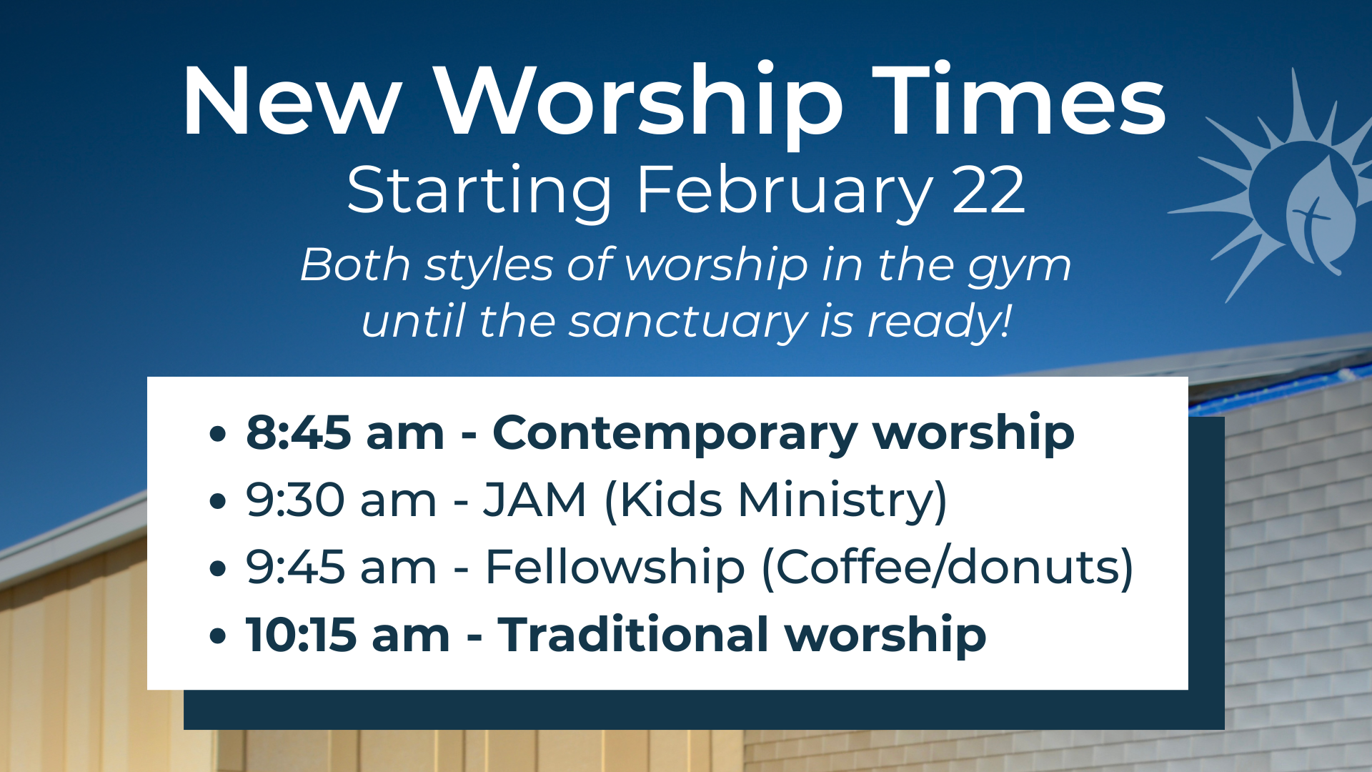 New Worship Times Starting February 22